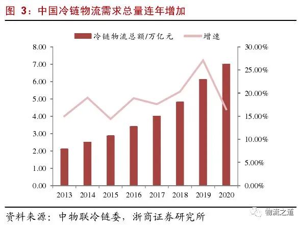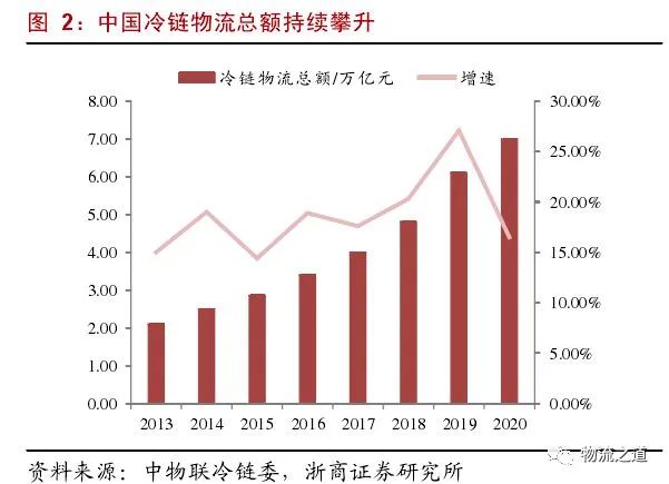 隨著消費水平不斷提升,冷鏈物流行業呈增長大勢,特別是經歷新冠肺炎疫情后,冷鏈作為重要的運載保存方式,受到政府及市場的極大重視,一定程度上新冠疫情對冷鏈產業發展打了一劑“催化劑”。