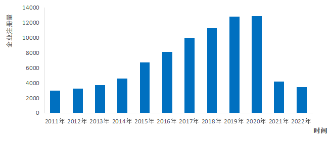 圖2-3 2013-2022中國預(yù)制菜相關(guān)企業(yè)注冊量 (圖表數(shù)據(jù)來自邁點研究院《2022年中國預(yù)制菜產(chǎn)業(yè)發(fā)展報告》和艾媒咨詢《2022年中國預(yù)制菜產(chǎn)業(yè)發(fā)展白皮書》)