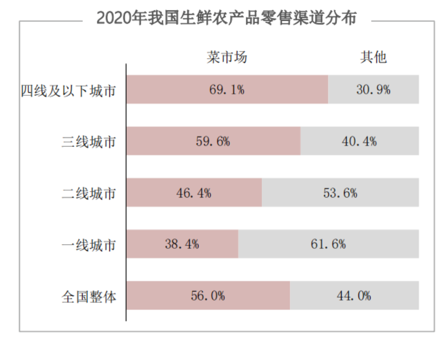 (六)銷售端——農(nóng)產(chǎn)品銷售渠道仍以菜市場等線下為主,線上滲透率低