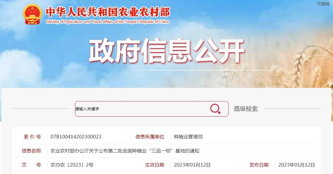 導語:農業農村部公布新一批全國種植業“三品一標”基地。