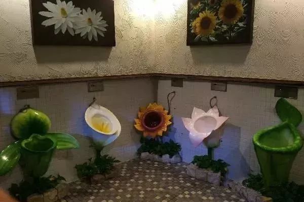 花露農場把花草元素融入到廁所設計里,這里的便池不再是司空見慣的白瓷,而是為了體現“花露”主題,被制作成了色彩斑斕、形狀各異的花草造型,十分新奇。小小的一個廁所,因為這幾朵花朵小便器變得十分趣致,讓人忍不住多逗留幾分鐘。農場主人這個廁所起了個雅名:二便文化概念館。