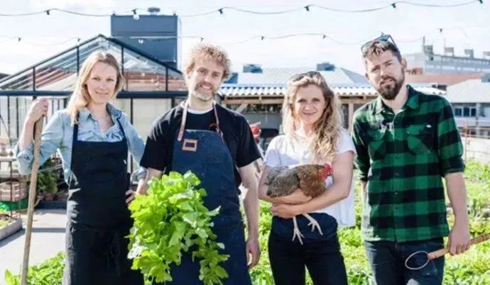 屋頂農場與餐廳,期盼將人們心中的高樓建筑,變成有溫度的地方。將冰冷的高樓建筑,蛻變成溫馨之地,設在玻璃溫室中的餐廳,浴著日光供應新鮮食材。