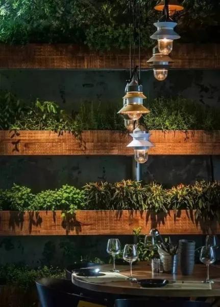 這個郁郁蔥蔥充滿生命力的餐廳從地面、墻面,到天花板都妝點了植物,創造出一個生機盎然的、一個玻璃容器般的溫室餐廳。