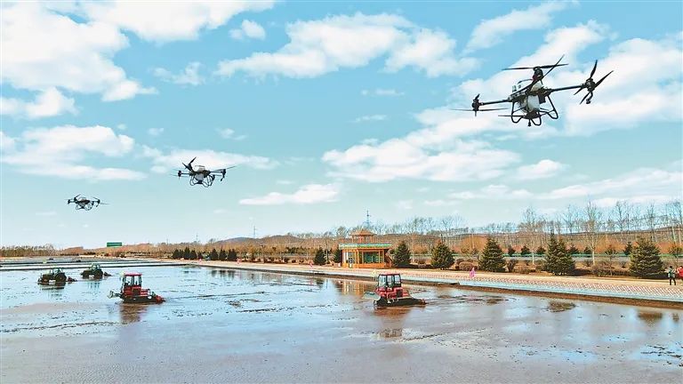 在北大荒農業股份寶泉嶺分公司的春耕現場,融合了物聯網、人工智能等新技術的無人化農機,在田間上演了一場“科幻大片”。