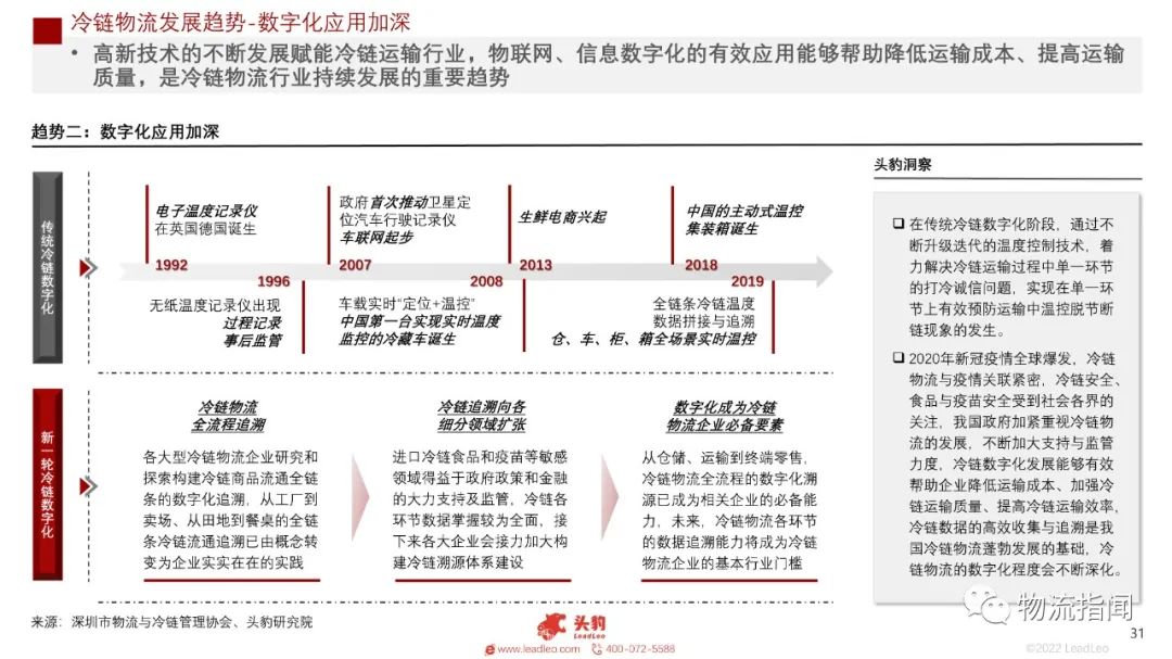 2020年以來冷鏈運輸的社會需求量大幅提高,催生出巨大的冷鏈物流市場,受到國家和社會的高度關注,極具發展前景。本文從三個角度分析冷鏈物流的創新發展趨勢:政策加持冷鏈物流行業;冷鏈物流基礎設施建設仍需加強;數字化、多元化發展成趨勢。