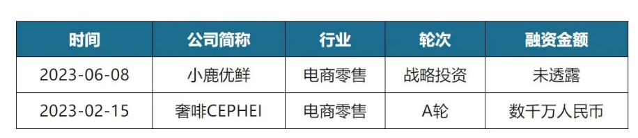 2023年1-10月24國生鮮電商行業共發生的2起投融資事件中,已披露金額最奢啡CEPHEI收到的A輪,金額達數千萬人民幣。