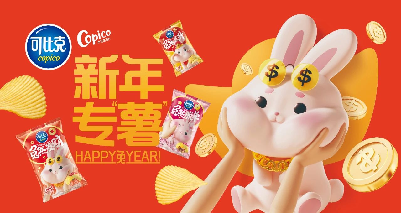 可比克是薯片品類的頭部品牌,近年來通過產品創新、營銷升級不斷強化品牌勢能。兔年新春來臨之際,可比克以“兔”這一生肖元素為靈感,推出兔年新春限定包裝。