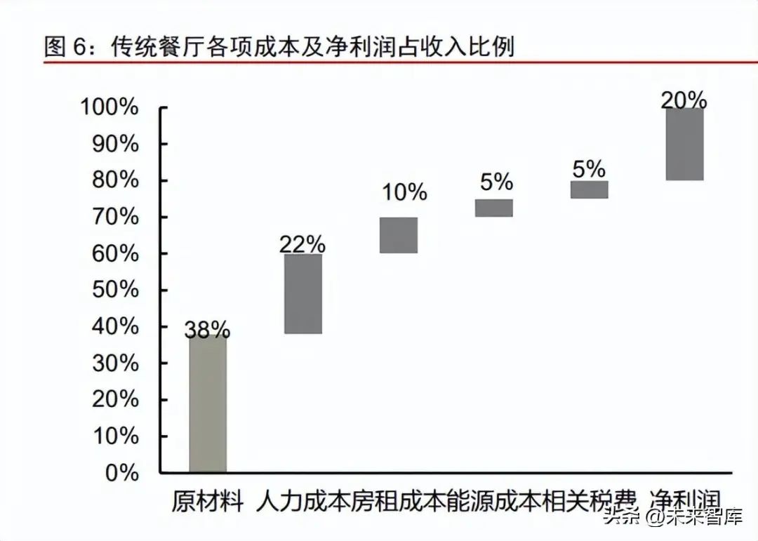 餐飲企業(yè)“三高”難題擠壓利潤空間,生存壓力較大,降本增效需求明顯。原材料、 人力及房租為餐飲企業(yè)的主要成本構(gòu)成,通常合計(jì)占比達(dá)到 70%以上,且面臨租金及員工 工資持續(xù)上漲的壓力,疊加行業(yè)進(jìn)入門檻較低、競爭激烈,導(dǎo)致餐飲行業(yè)不僅利潤空間較 薄,同時(shí)行業(yè)每年以超過 30%的比例進(jìn)行洗牌。在此背景下,餐飲企業(yè)在降低對員工/廚 師依賴、減少后廚面積以提升坪效、提高出餐速度、標(biāo)準(zhǔn)化輸出菜品等方面需求日益增加。