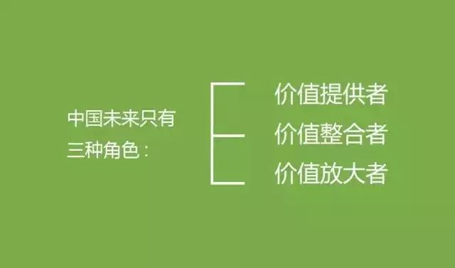 價值提供者是依靠個體勞動創造直接財富,比如:司機、醫生、律師等等,影響力大了可以靠名聲創富,比如明星、作家、大導演、名主持等等。價值整合者是依靠配置社會資源間接創造財富,主要指的是企業家和各種組織的領導者,他們促進社會資源向最需要的地方流動。價值放大者是依靠平臺或財富的力量去撬動企業和項目的成長,他們往往是大平臺的擁有者或財團掌控者,比如馬云、馬化騰、李彥宏、巴菲特、孫正義等等,他們促使社會財富呈爆發式增長。三個階層不是固化的,而是可以流動的。