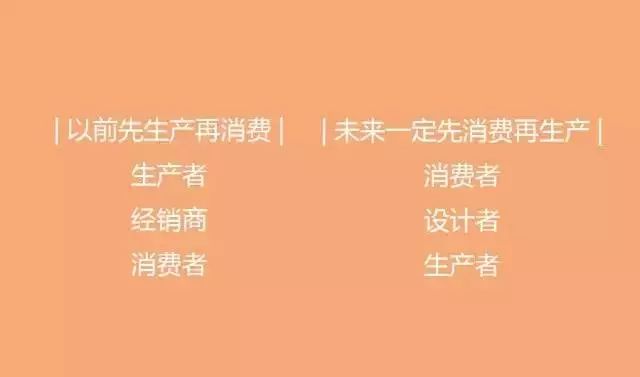 當你有一個想法時,你可以先表達出來,然后在平臺上進行展示(這樣的平臺會越來越多),然后吸引喜歡的人去下單,拿到訂單后可以找工廠生產(不用擔心量太少,今后的生產一定會精細化和定制化),然后再送到消費者手里。
