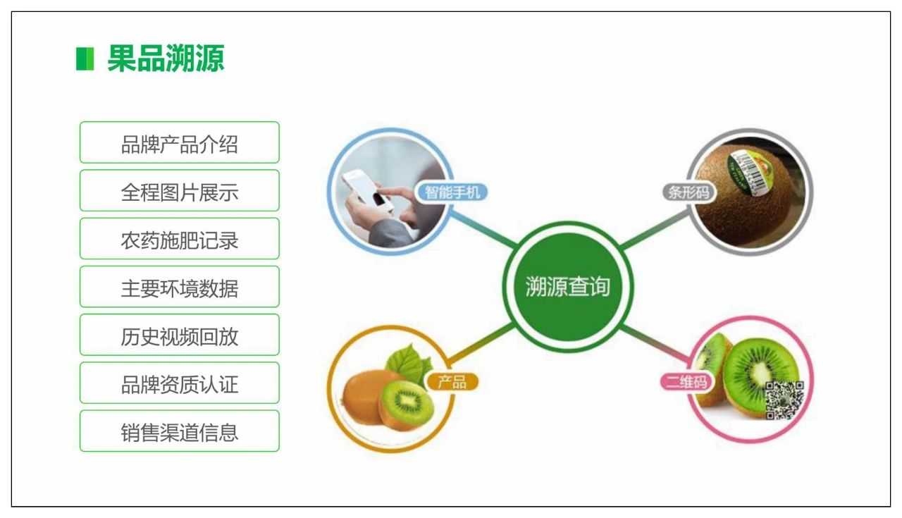 智慧果園將物聯(lián)網(wǎng)、移動(dòng)互聯(lián)網(wǎng)、大數(shù)據(jù)技術(shù)運(yùn)用到管理中,實(shí)現(xiàn)果園四情監(jiān)測(cè)、水肥設(shè)施自動(dòng)化控制、 產(chǎn)品質(zhì)量追溯等,提高果園的勞動(dòng)生產(chǎn)率、果實(shí)商品率,推進(jìn)獼猴桃規(guī)模化、智能化種植、經(jīng)營(yíng)。