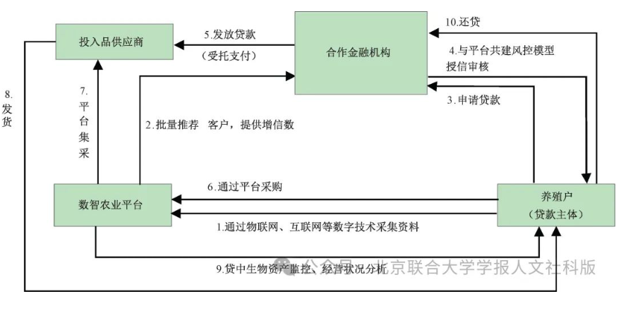第二,延展全產業鏈綜合金融服務功能。相較傳統農業以家庭經營為主,智慧農業技術特性明顯,工業化生產特點明顯,因而更多以“龍頭企業+農戶”“科技公司+合作社+農戶”等產業化聯合體方式推進,更需要貫通全產業鏈的綜合金融服務支持。較多具有技術優勢的科技公司,以及具有一定產業基礎的農業龍頭企業,通過打造全產業鏈智慧農業生態系統,打通農業產業鏈上的主體、資金、信息、物流聯結渠道,最終形成多主體、多功能的產業鏈生態。智慧農業的產業化聯合體組織方式,逐漸改變了農村金融制式化、單一化的產品服務輸出方式,不斷推動農村金融機構延展綜合服務商功能,依靠產業鏈運行中產生的信息流、物流、資金流等各類數據信息,為產業鏈上下游主體提供支付結算、現金管理、供應鏈融資等全產業鏈綜合金融服務。
