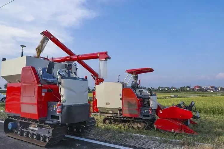 華南農業大學成功研制出2種無人駕駛主從收獲系統:第1種為隨車卸糧模式,作業時無人駕駛卸糧車與無人駕駛收獲機并行,在直線段卸糧,直線行駛時收獲機和運糧車橫向位置誤差不超過5 cm、縱向位置誤差不超過10 cm,可保證收獲機準確地將稻谷卸至運糧車中。第2種為等待卸糧模式,無人駕駛收獲機在田中收獲時,無人駕駛卸糧車在田邊等待;收獲機糧倉快滿時,通過云端服務器向卸糧車發出卸糧通知,卸糧車隨即自動行駛至收獲機旁邊,收獲機準確地將收獲的稻谷卸至運糧車中;卸糧后收獲機繼續收獲,卸糧車糧倉裝滿后自動開至田邊,將稻谷卸至運糧卡車中,由運糧卡車將稻谷運至干燥中心。在廣東增城水稻無人農場的收獲中,采用了第2種模式,即等待卸糧模式。