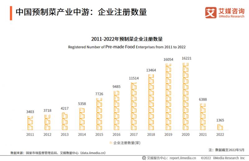 數(shù)據(jù)顯示,2011-2020年,預制菜企業(yè)注冊數(shù)量逐年遞增,2020年預制菜企業(yè)注冊數(shù)量達16221家。2021年仍有近6388家相關(guān)企業(yè)注冊。