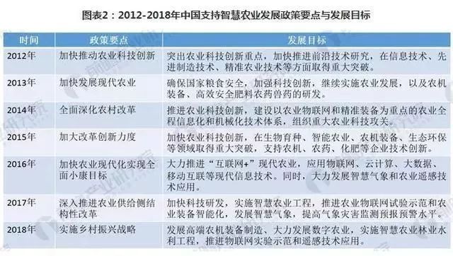2012年以來,我國智慧農業行業發展目標逐漸明確。隨著農業供給側改革的深入,我國農村土地政策趨于更加靈活,更加注重規范、品質、效率的新型農業主體數量不斷增加;互聯網產業發展迅猛,物聯網、云計算、大數據在各個行業的應用愈加成熟,智慧農業必將迎來爆發。