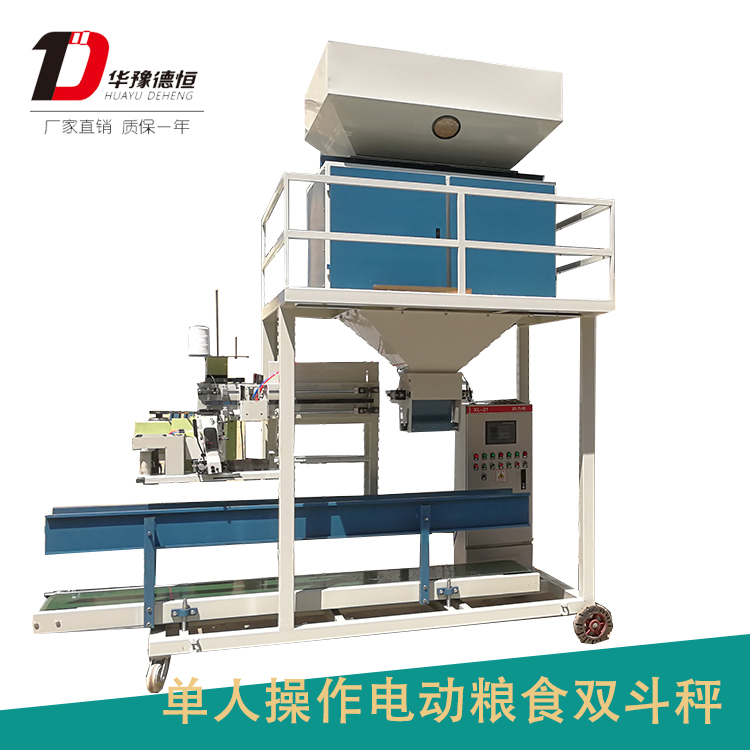 本機為雙計量斗,稱重傳感器支撐的計量斗對物料進行動態計量。無論夾袋與否都不影響機器稱重,稱重完成后如果在夾袋狀態,自動把稱重完成的物料卸料如袋。然后由機械手自動把袋子輸送至封包機系統進行縫包。