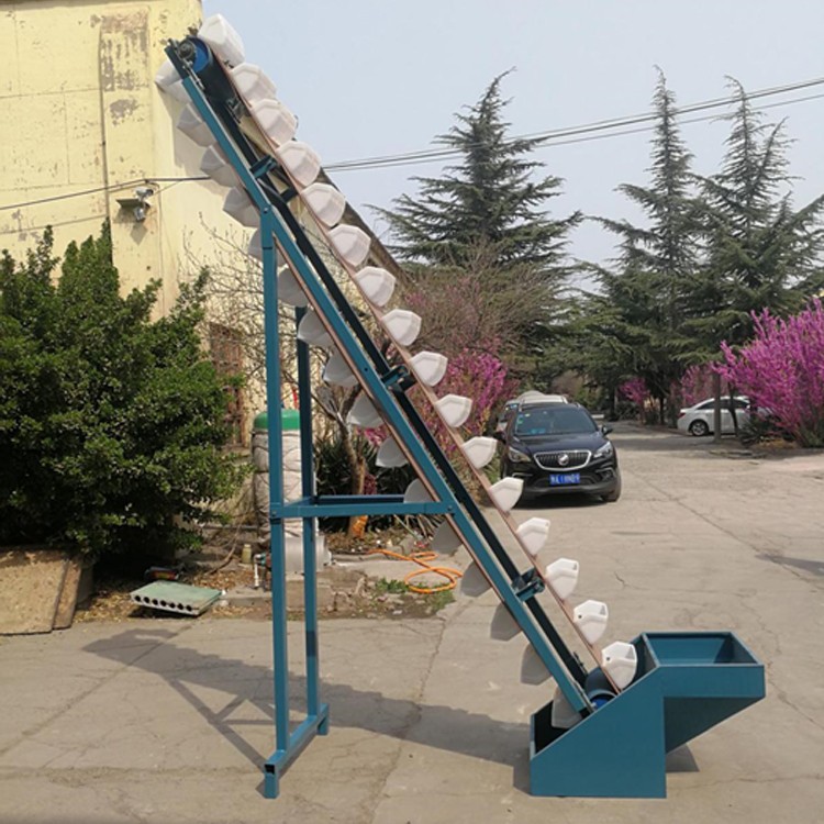 主要適用于花生、瓜子等比重較輕,易碎的物料的提升。一般用于包裝機的配套提升設備。有皮帶式和板鏈式兩種形式,畚斗有尼龍、不銹鋼、碳鋼可選。